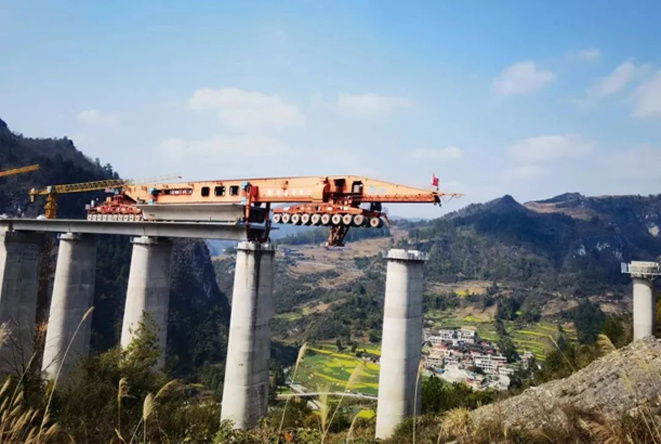 發(fā)布日期:2022-12-132022年12月12日,中鐵二局新運公司貴南鐵路1標段全部245孔混凝土箱梁架設完畢,這一階段性的勝利為該項目后續(xù)橋面系施工及鋪軌工作全面展開奠定了堅實的基礎。此次施工采用秦皇島天業(yè)通聯(lián)重工科技有限公司自主研制的TTYJA900噸運架一體式架橋機,箱梁架設工作由秦皇島天業(yè)通聯(lián)智能裝備公司承擔。